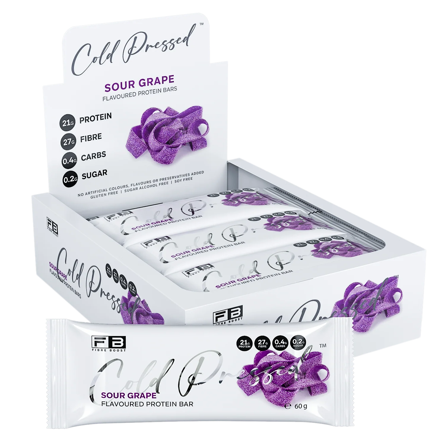 The Fibre Boost Protein Bars Sour Grape (12 x 60g) bring that classic tangy grape flavour into a clean, low carb bar that delivers both taste and function without the sugar hit.