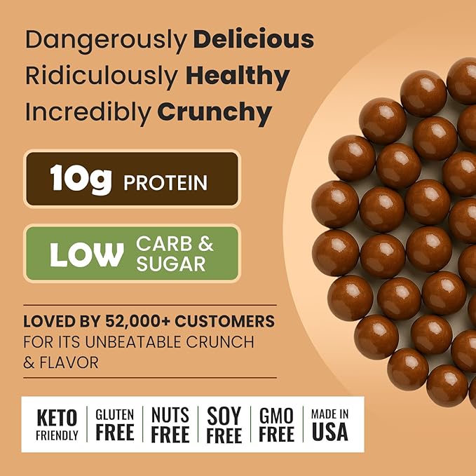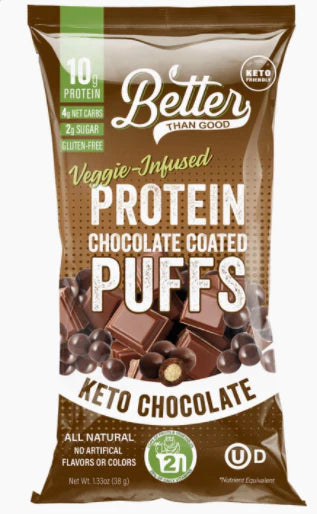 KETO-FRIENDLY WITH LOW CARBS: With less than 3 carbs per pack, these chocolate protein puffs are perfect for low-carb diets and an excellent choice for diabetics. A protein-packed snack that fits your keto and low-carb lifestyle.