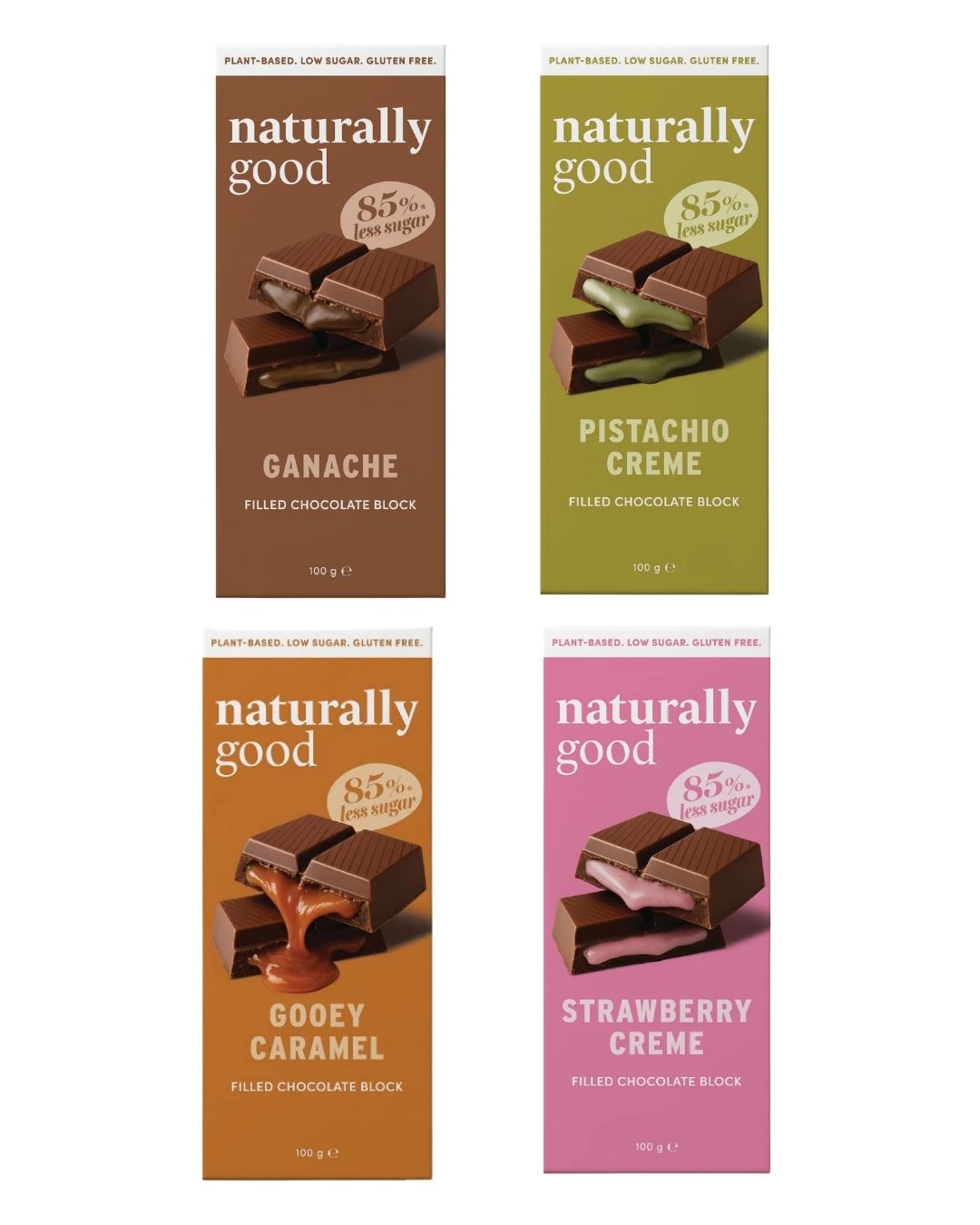 Naturally Good's Filled Chocolate Blocks (100g) are Australian-made, vegan, and gluten-free treat featuring a rich, flowing filled centre coated in 35% cocoa solids mylk chocolate. Designed for mindful indulgence, this product offers 85% less sugar than traditional chocolate. It is made with coconut milk powder and monk fruit, catering to dairy-free and healthier, low-carb lifestyles.