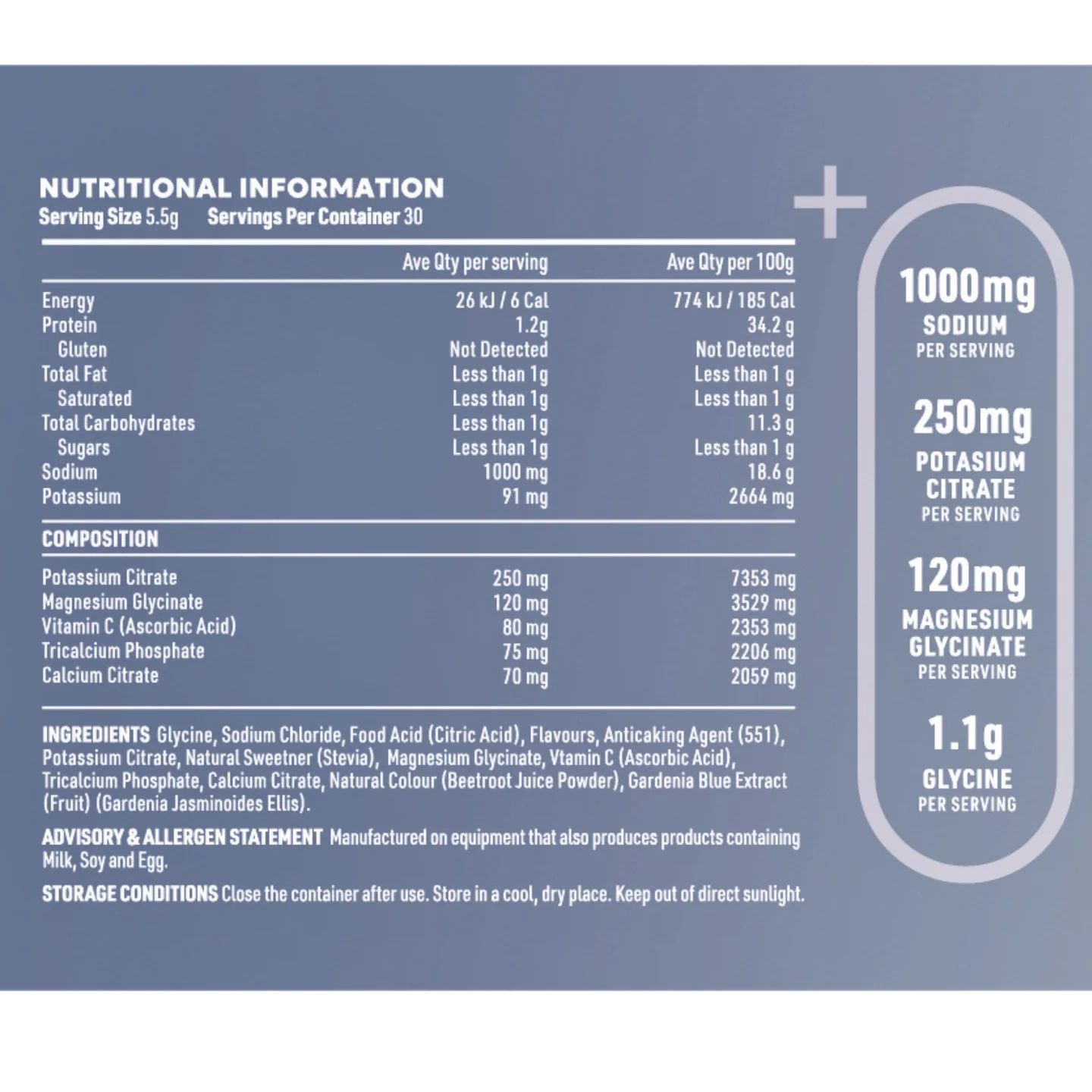 Revitalise Sodium+ delivers 1000 mg of sodium in every serving, plus potassium, magnesium, and glycine for optimal absorption and hydration.